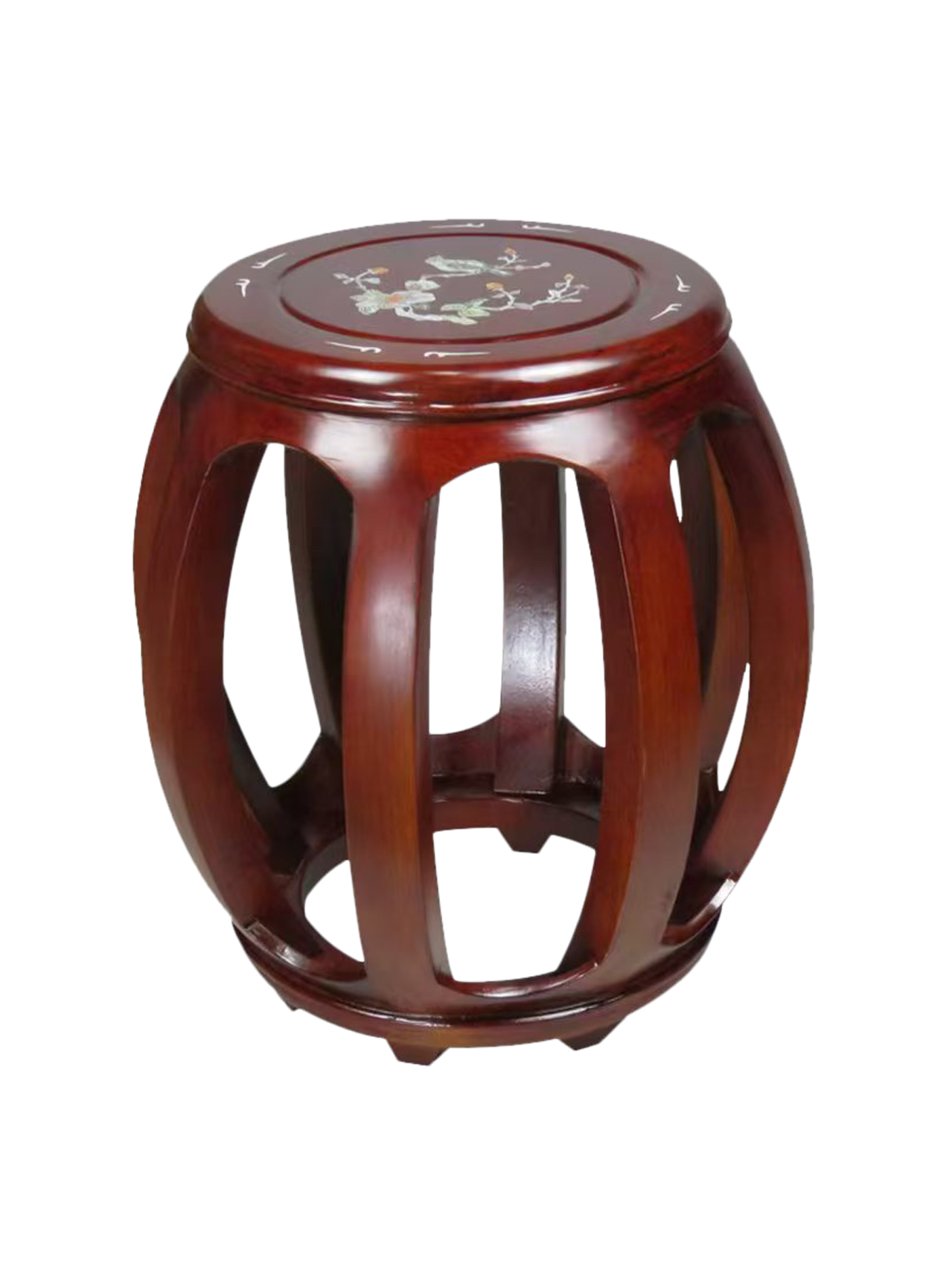 琴凳 - 红木色花鸟琴凳